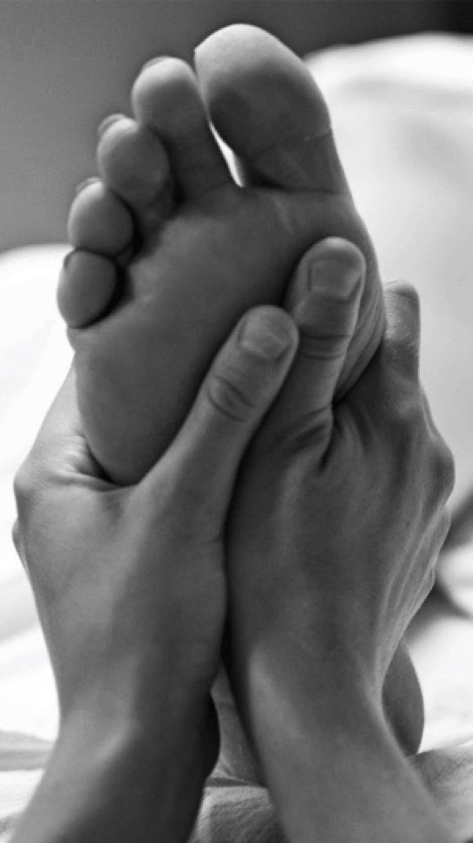 In reflexology, by applying gentle pressure to bare feet, we can stimulate parts on the feet, releasing imbalances in the corresponding part of the body. This in turn helps to promote health and well being.